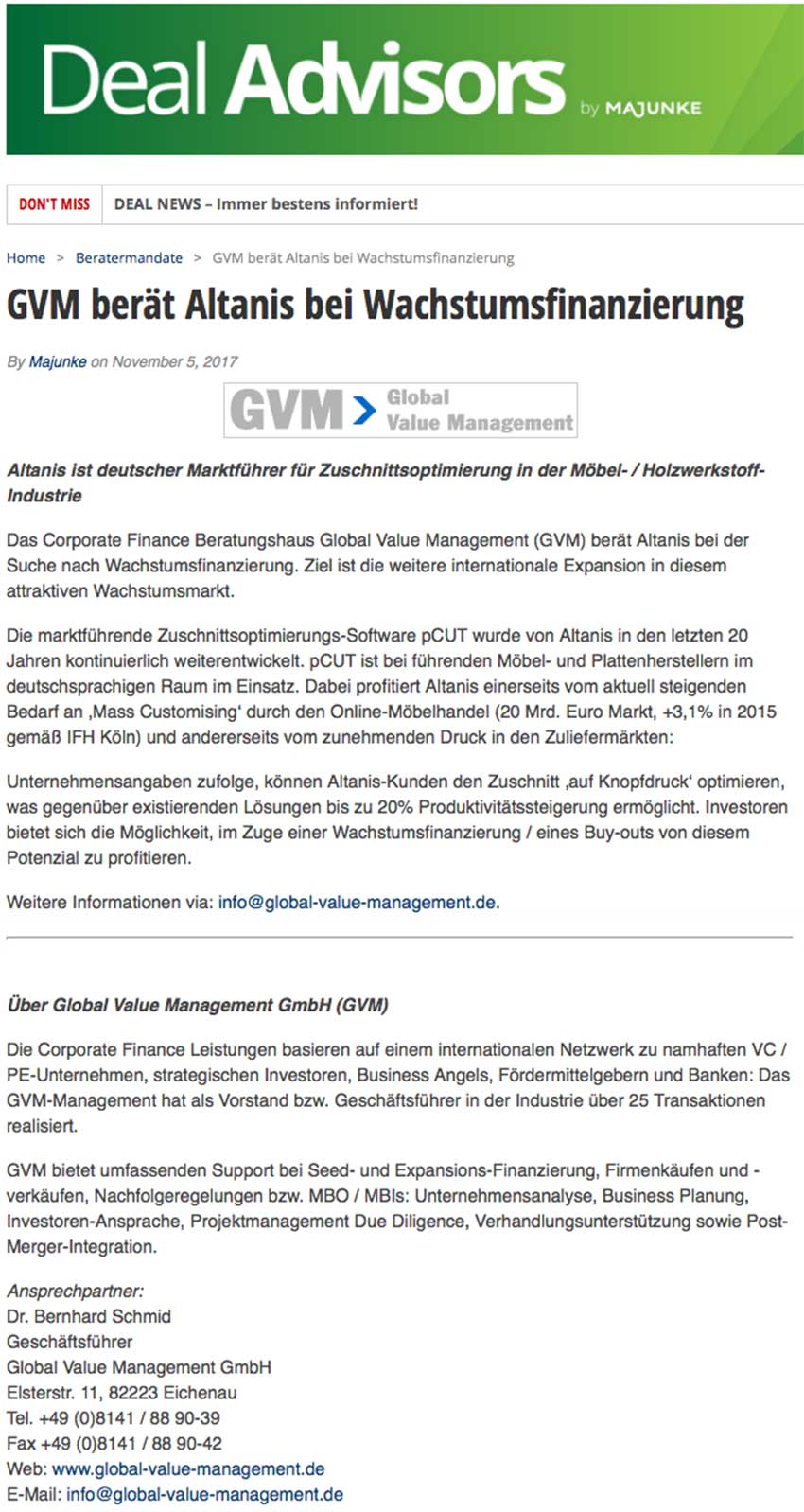 GVM-Profil M&A News